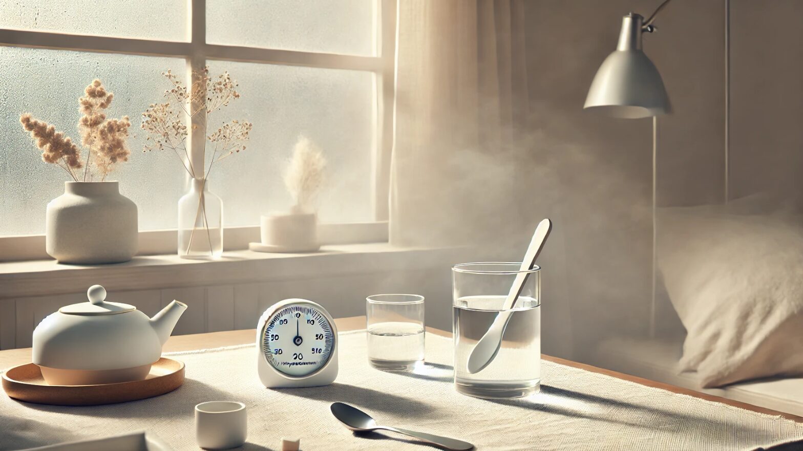 さらに、洗濯物の室内干しや、ポットの蒸気を利用することで簡易的に加湿できます。寝る前には枕元にコップ一杯の水を置いておくと、朝起きたときの喉の不快感を防げます。