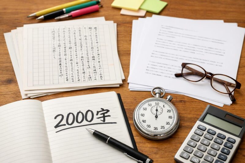 また、書き終えた後に自分で読み直す際は、「この一文は読者にとって必要か」という問いを一文ごとに繰り返すと、内容の精度を高めることができます。文字数を満たすことと内容を充実させることは矛盾しません。丁寧に構成を組み、根拠と具体例を意識することで、2000字程度の文章でも読み応えのある仕上がりになります。