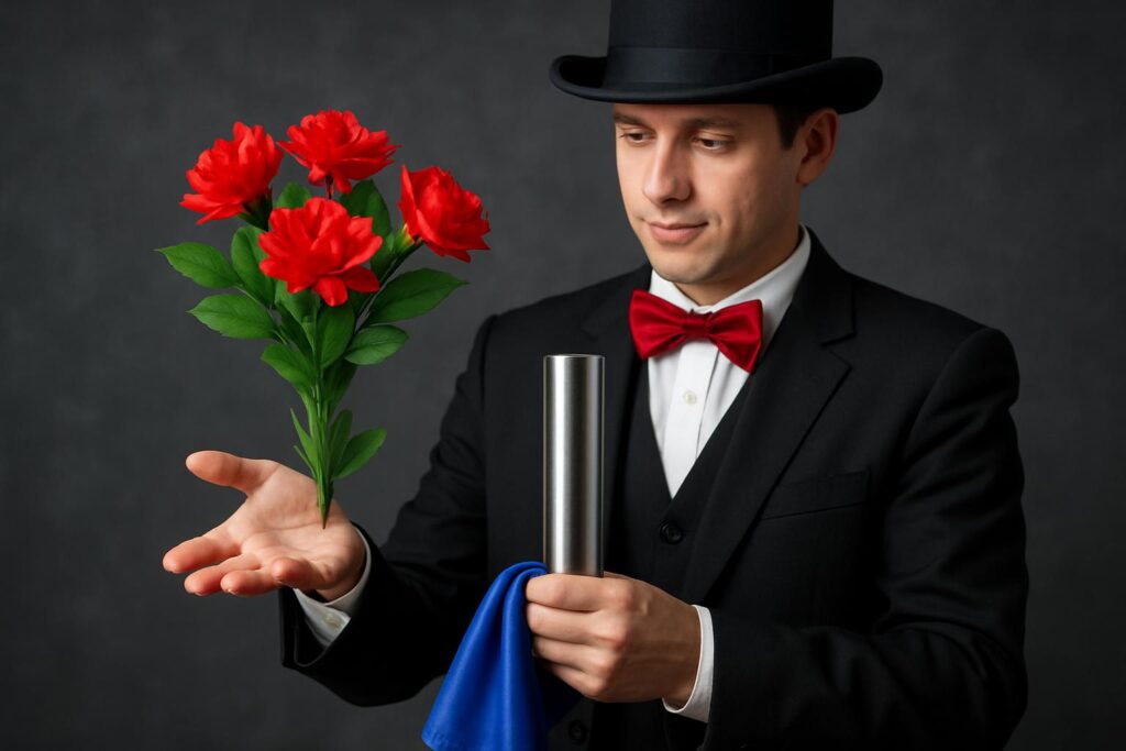 花を出すマジックは、その華やかさと美しさで観客を魅了する手品の定番です。パッと花が現れる瞬間は、会場を一気に盛り上げてくれますよね。初心者の方でも簡単に習得できる基本的なテクニックから始めて、段階的に上達していきましょう。