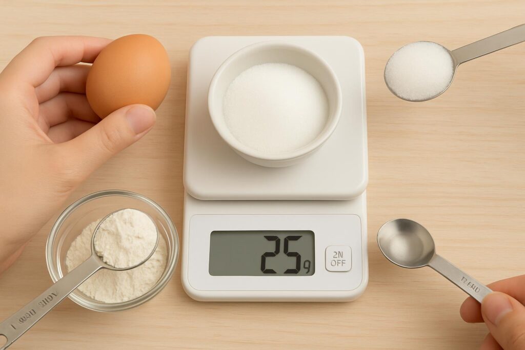 より正確に計量したい場合は、デジタルスケールの使用をおすすめします。1g単位で計れるため、25gという微妙な分量も確実に計ることができます。ただし、スケールがない場合でも、これらのポイントを意識することで、計量スプーンでも十分正確な計量が可能です。