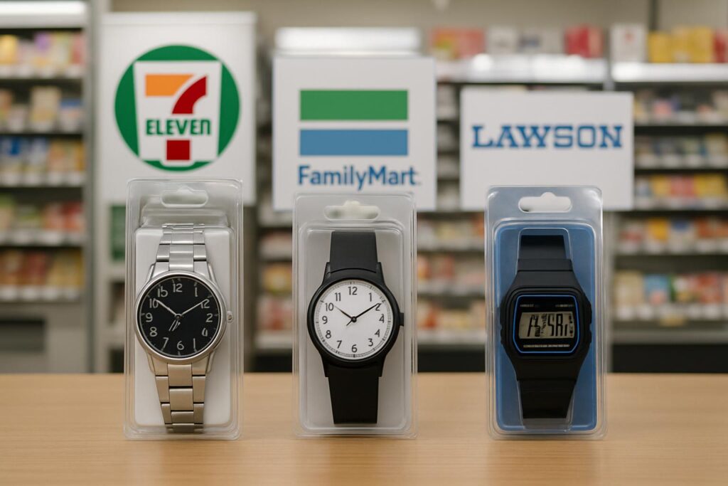 急に時計が必要になった時、身近なコンビニでどんな腕時計が買えるのか気になりますよね。主要コンビニチェーンであるセブン-イレブン、ファミリーマート、ローソンで実際に販売されている腕時計について、詳しく調査してみました。